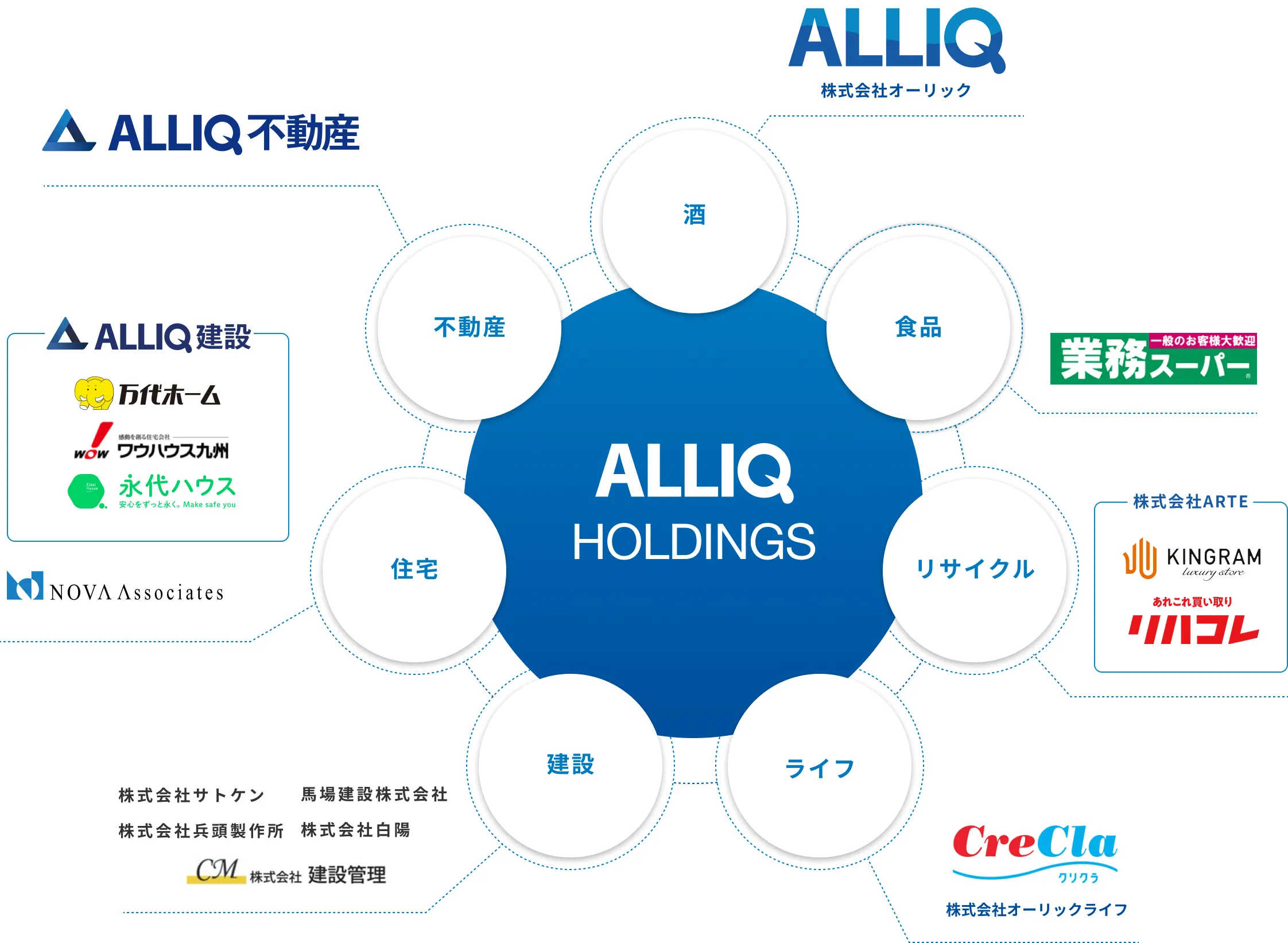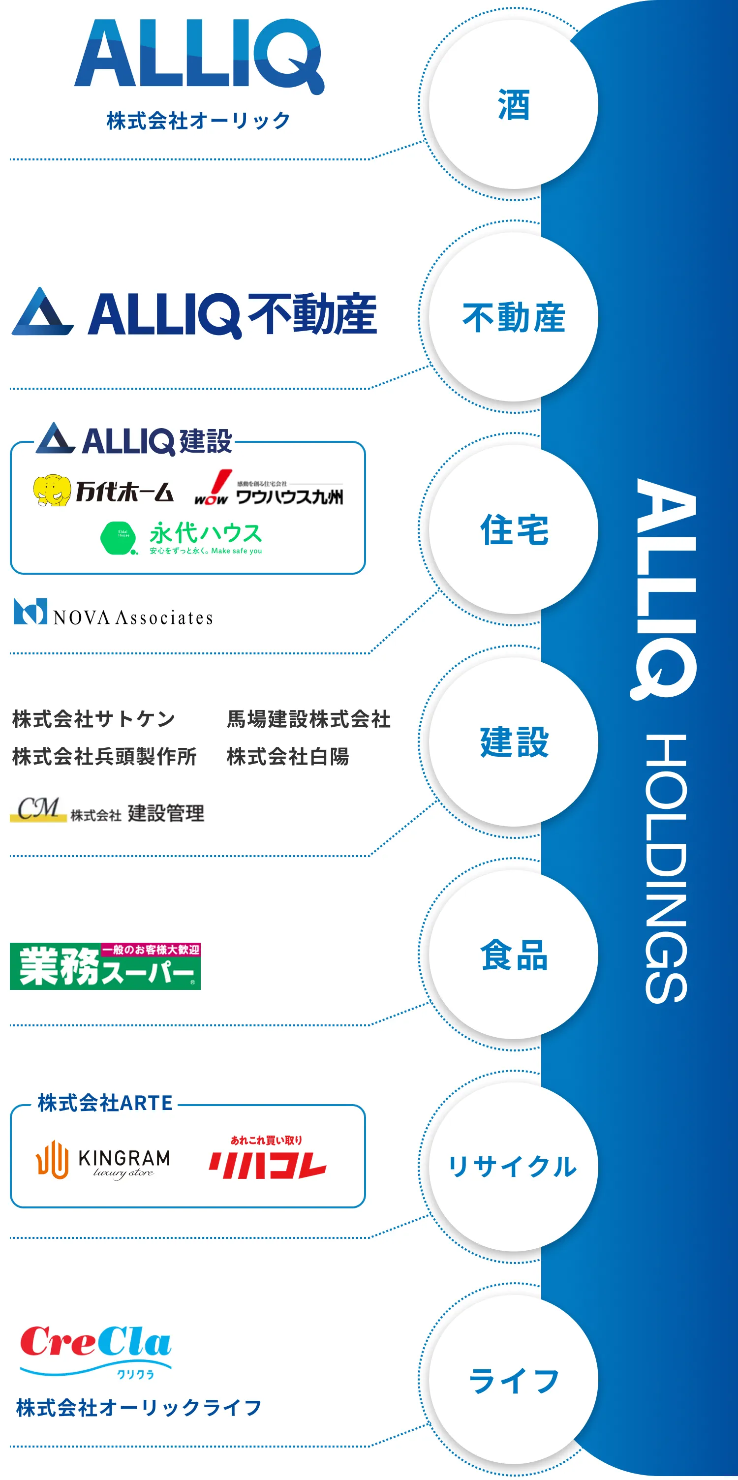 全国各地の食卓を彩り、日々の生活に歓声をもたらすパートナーとして、皆様のもとへ最高の品質とサービスをお届けしています。私たちのビジネスは、酒類事業だけにとどまらず、不動産建設事業、住宅事業、食品事業、リサイクル事業と、多岐にわたる分野で社会の発展に貢献しています。
